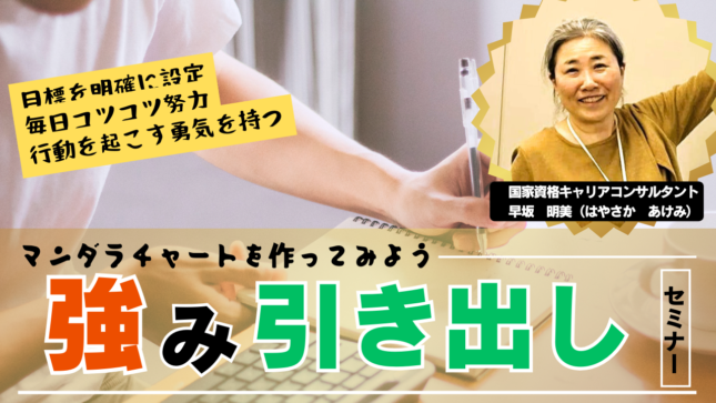 昨日は、午後から「強み引き出しセミナー(オンライン)」~マンダラチャートをつくってみよう~を開催しました。